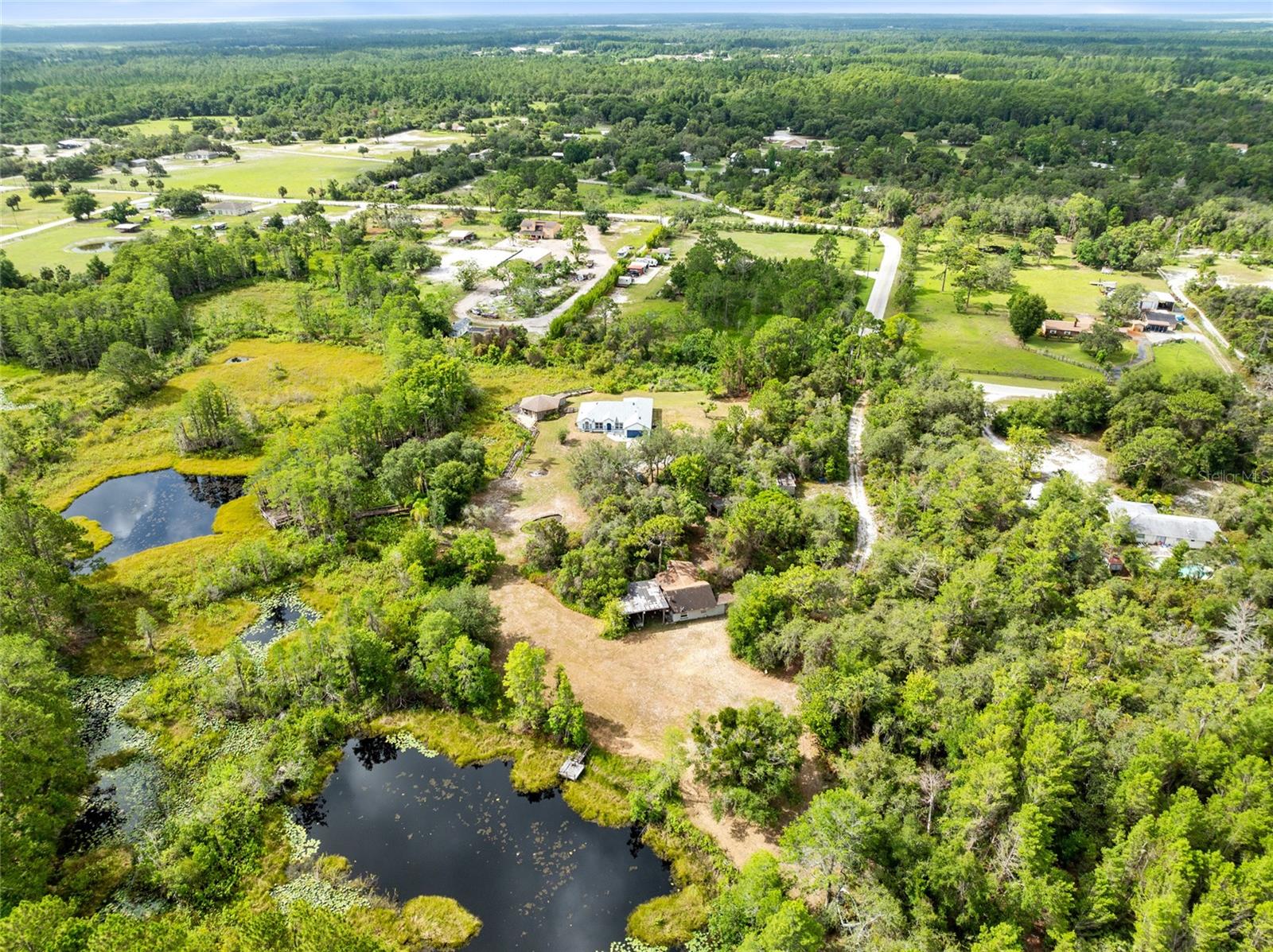 Over 8 Acres of Pure Osteen Paradise! Come enjoy this massive 4 bedroom 2 bath custom built home over 2,200 Sq. Ft. open floor plan with soaring vaulted ceilings surrounded by nothing but nature! BRAND NEW ROOF & Master Bathroom recently remodeled w/ steam shower and yes, A COPPER TUB!!! Kitchen and guest bathroom were both renovated in 2016 with new cabinets, quartz counter tops and stainless appliances. Water Softener/Filtration System is less 4 years old. New Lighting & Wi-Fi Switches installed throughout and the WHOLE HOUSE was just Repainted in 2025. New water heater and new tile floors in all the bedrooms! Hard to find attached 2 car garage along with a pole barn/RV parking, numerous buildings throughout the property that you can use for whatever you like, including a 28' x 28' hexagon shaped enclosed gazebo currently used as a wood working shop overlooking the pond/lake with included 12' x 7' storage room. Custom built brick grill area leads you down the boardwalk/dock to separate access points of the water on the property, so bring your fishing poles! This huge property, big house and bonus buildings won't last long at this price! Call now for your chance to view it and get your offer in!